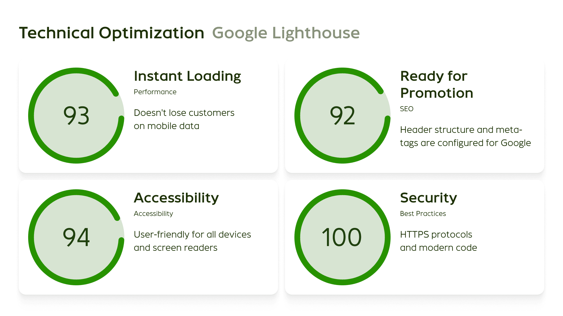 Google Lighthouse metrics confirm the quality of our architecture: